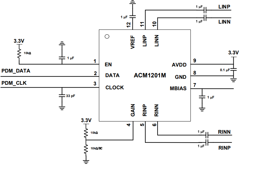 ACM1201是一款高性能、低功耗的立體聲ADC芯片。它將來自MEMS麥克風的模擬信號高質量地轉換為PDM數字信號。