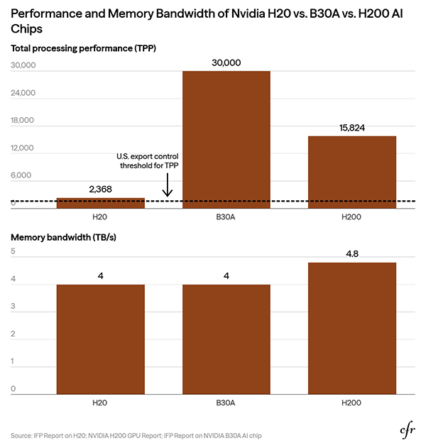 △英偉達H20與B30A與H200 AI芯片的性能和內存帶寬對比