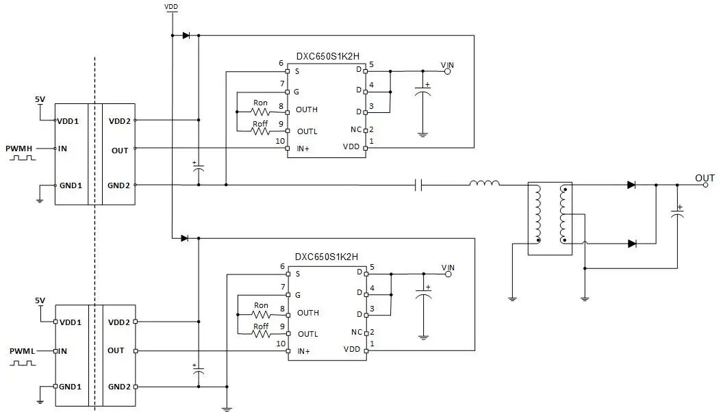 高集成度與易用性:DXC650S1K2H采用SOP10封裝,具有低寄生電感和電阻,用戶無需設計復雜的負壓驅動電路,也無需擔心多個器件并聯時的閾值不一致問題,大幅降低了設計難度與系統成本。