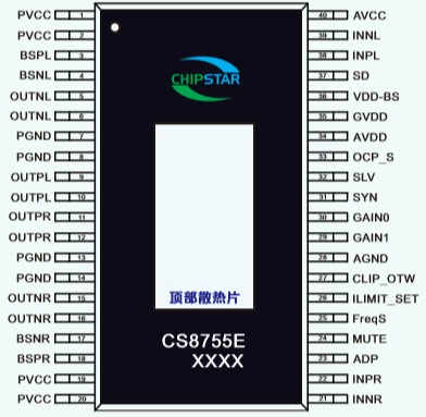 CS8755E提供了特殊的EFB40封裝形式供客戶選擇,合適的封裝尺寸為客戶安裝散熱器件提供了最大的方便,其額定的工作溫度范圍為-40℃至85℃。