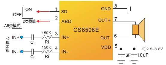 當前位置:首頁->產品展示->功放IC->CS8508E(AB類/D類切換8W單聲道音頻功放IC) |