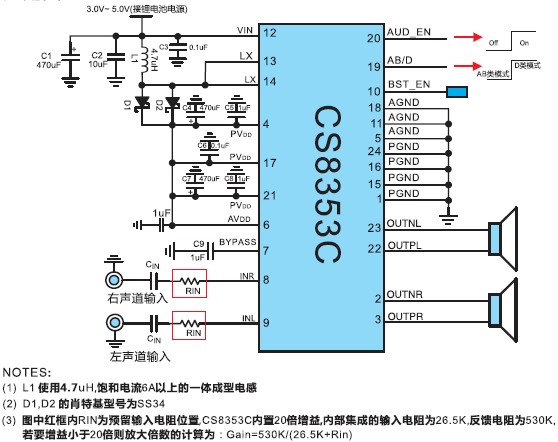 內置BOOST升壓的2×5.5W立體聲音頻功率放大器 |