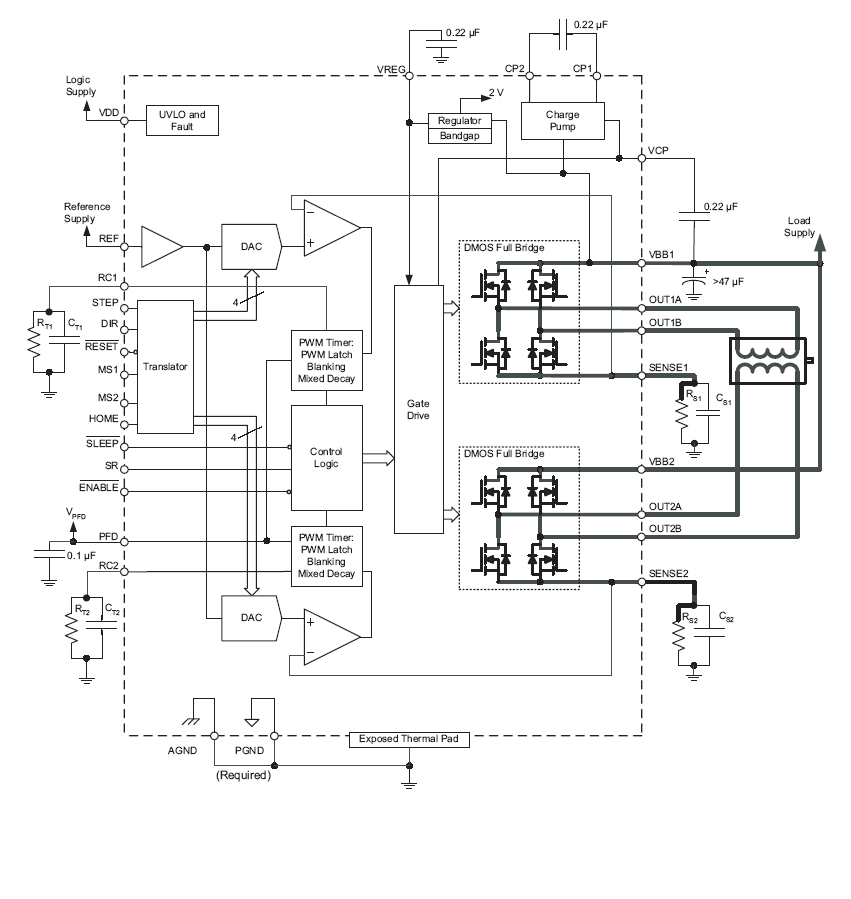 具有片上1/32微步進分度器的3A雙極步進電機驅動IC |