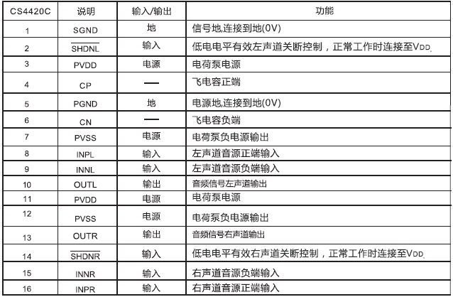 產品名稱: CS4420(帶關斷功能130mW差分輸入無輸出電容立體聲G類耳機放大器IC)