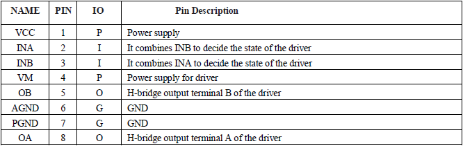 HR5561的H橋驅動部分采用低導通電阻的PMOS和NMOS功率管。低導