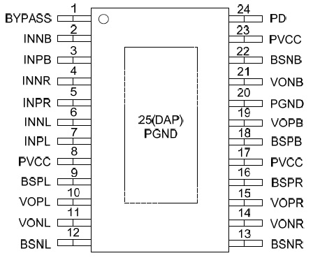 無濾波2X25W立體聲D類功放IC,管腳兼容TPA3110 |