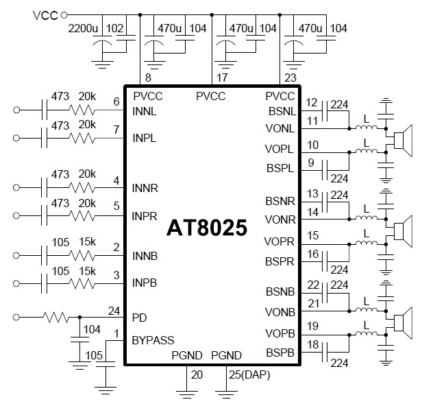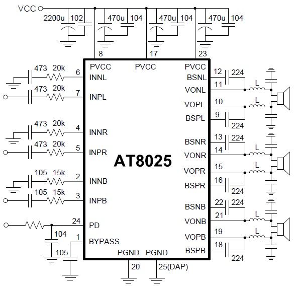 30W(4Ω)+16W×2(8Ω)/16V |