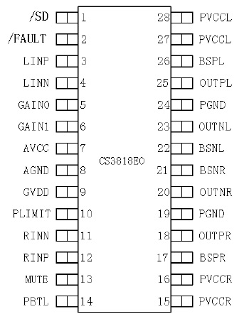 CS8611 30W(4Ω)+16W×2(8Ω)/16V EQA-28 5V-18.5V 擴頻技術,固定40倍增益,差分輸入,2X15W+30W 2.1聲道專用D類音頻功放