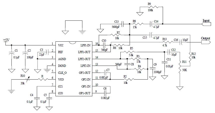 混響處理芯片,該芯片應用于卡拉OK中。與同類數字延遲電路相比,本產品有較大的存儲器 |