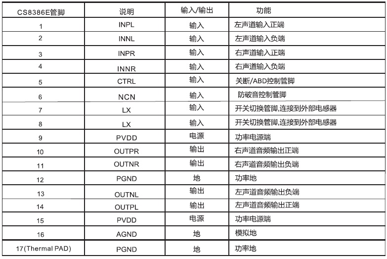 恒定4.8W/2.5V-5.5V(內置自適應Charge Pump模塊)/4Ω |