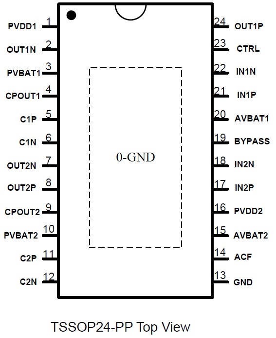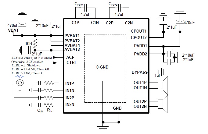 2X4.5W/2.7V-5.5V(內置電荷泵無電感升壓模塊)/4Ω |