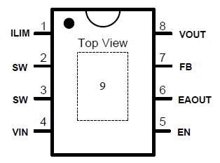 產品功能: 輸入電壓2.5V-8.5V;能夠提供最高9V的輸出電壓;可為采用單節或兩節鋰電池的應用提供支持。該器件具備9A開關電流能力