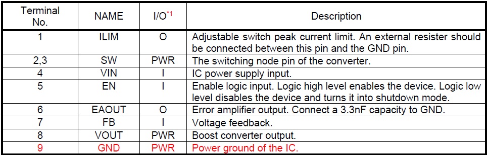 ・輸出電壓范圍VOUT:VIN-9V