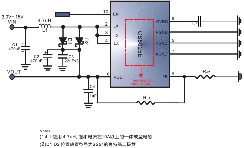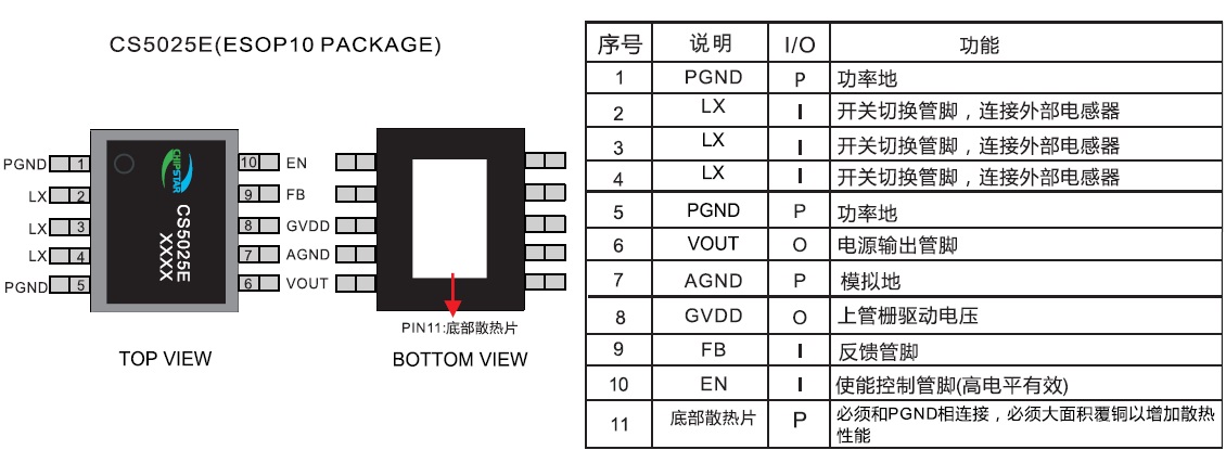 CS5025 輸入電壓:3-12V;輸出電壓最高可提供14V恒定的電壓輸出;最大可保證8A的峰值電流下 ESOP-10 3V-12V 內置MOS、8A高效率DC-DC升壓IC