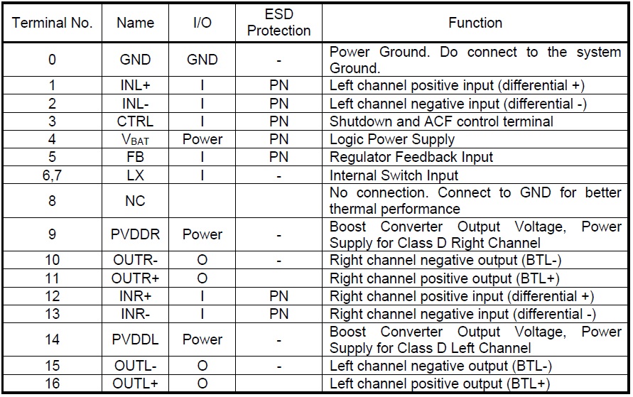 18W/3.0V-12V(內置升壓至12.3V)/4Ω |