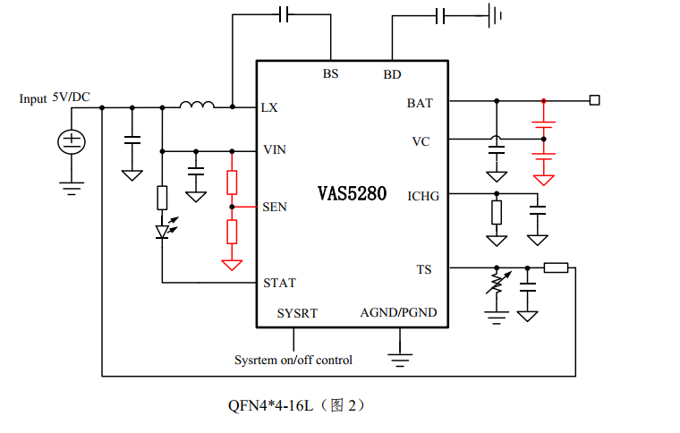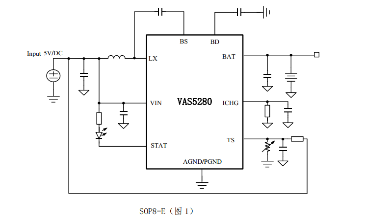 VAS5280(5V USB輸入、同步升壓兩節鋰電充電管理IC) |