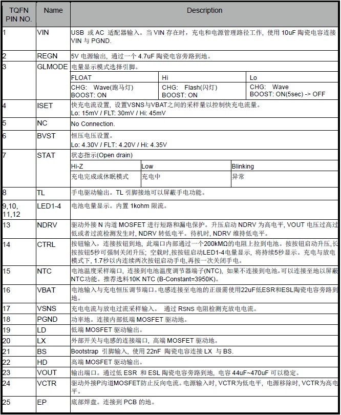 集成同步升壓、鋰電池充電管理、電池電量指示的移動電源管理IC |