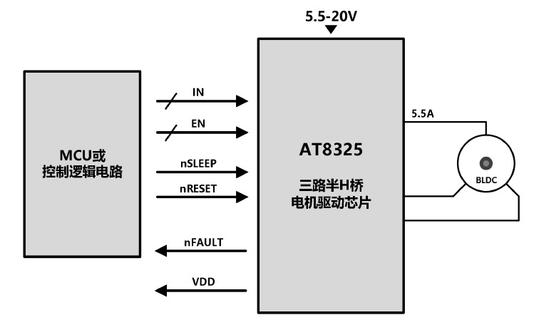 AT8325是一款包含三路半橋且可獨立控制的驅動芯片,用于