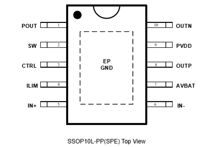 3W (VBAT=3.3V, RL=4Ω, THD+N<1%, 20-20kHz full band)