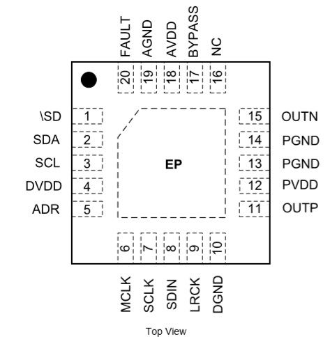 HT513 2.8W/5V/4Ω QFN-20 2.5V-6.5V 2.8W I2S輸入單聲道D類音頻功率放大器