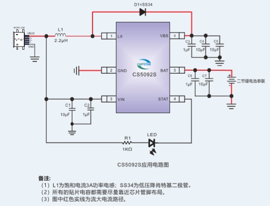 CS5092S是一款5V輸入、固定0.85A充電電流、支持雙節鋰電池串聯應用的升壓充電管理IC,采用SOT23-6極小封裝。 |