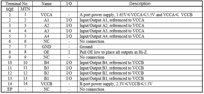 產品名稱: TXS0104/TXB0104/HT0104(4位雙向電平轉換芯片)