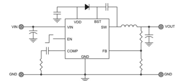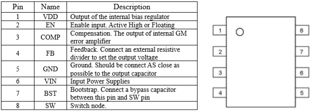 輸入電壓范圍:4V-60V;輸出電壓范圍:1V-VIN ;集成上下功率管,最大輸出電流2.5A |
