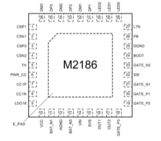M12239是一款面向雙路獨立的多電芯大功率移動電源應用的專用 SOC,集成了同步升降壓變換器、電池 充放電管理模塊、顯示模塊、電量計算模塊,提供最大 140W 輸入/輸出功率,支持 PD3.1、QC3.0、AFC、FCP、SCP、BC1.2 DCP 等主流快充協議,并提供過壓/欠壓、過充/過放、過溫等完備的保護功能。配合極簡的外圍 電路,即可組成單 C口大功率移動電源。輔以DC-DC芯片,可以擴展為3-8串電池雙路獨立的多口大功率移動電源。 |