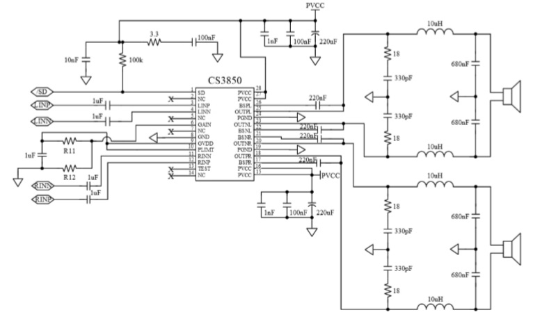 CS3850EO是一款典型輸出功率為40W立體聲的D類音頻功率放大電路 |