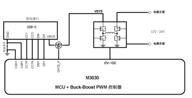 M3030 是一款面向車載充電器應用的電源管理SOC,集成了雙向升降壓電壓變換器、16位高精度ADC、USB Type-C 接口、MOSFET 驅動接口,兼容BC1.2 DCP、PD3.0/PPS、QC2.0、QC3.0、AFC、FCP、APPLE 2.4A 等流行的快充協議,支持過壓保護、過流 保護等完備的安全保護機制。 外圍僅需很少的元件,即可組成33W的車載充電器應用方案