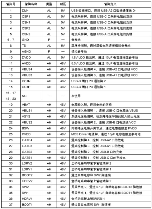 2-4節電池快充充電管理SOC ,內置PD3.0、PD2.0、QC3.0、QC2.0、BC1.2 DCP、UFCS等協議 |