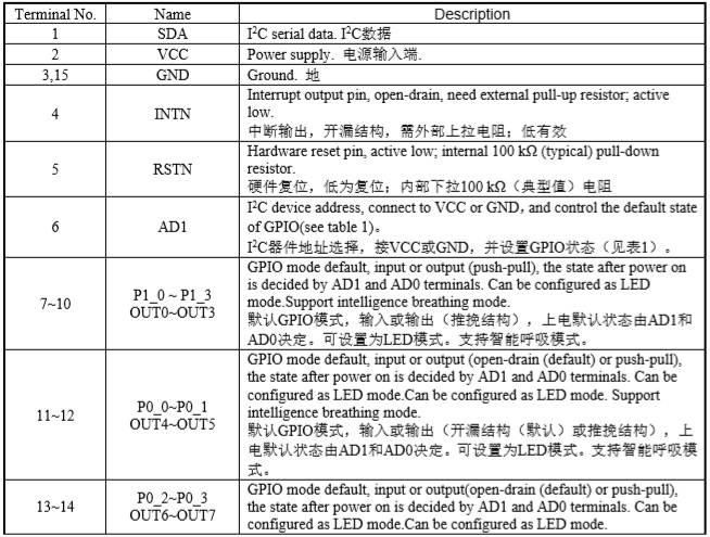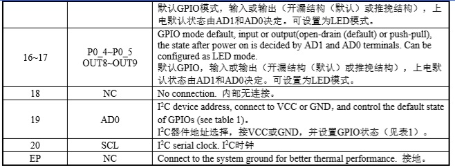 16路LED驅動器和GPIO控制器 |