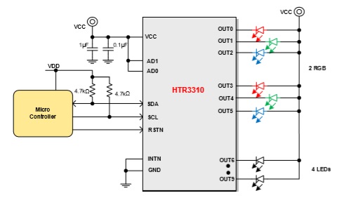 HTR3310是一款10路多功能LED驅動器和 GPIO控制器,2.5V~5.5V電源供電。10個IO端口中的任何一個都可以配置為LED模式或GPIO模式。此外,任何GPIO都可以單獨配置為輸入或輸出 |