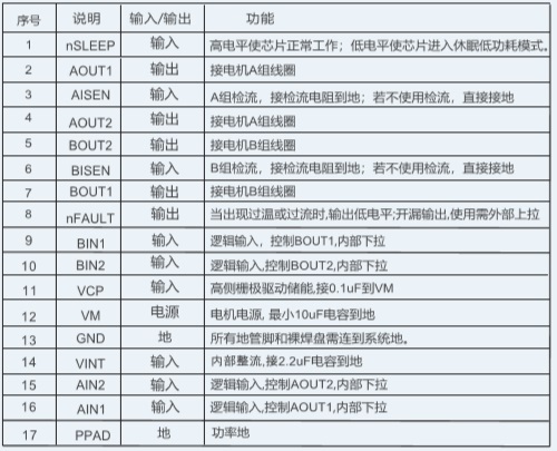 當前位置:首頁->產品展示->馬達驅動IC/步進電機控制芯片->CS9016(雙通道H橋電機驅動芯片)