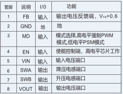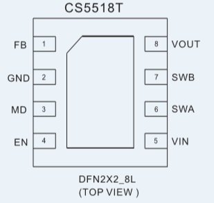 CS5517 輸入電壓范圍:1.8V -5.0V;輸出電壓范圍:1.2V-5.0V可調;最大電流輸出能力:0.6A DFN-8 1.8V-5.0V 低功耗,單電感,升降壓,600mA DC-DC電壓調整器 CS5518