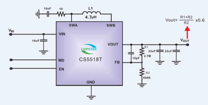 產品名稱: CS5518(鋰電池供電1.6A輸出低功耗DC-DC升降壓芯片)