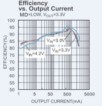 PWM/PFM自動切換占空比自動可調以保持很大負載范圍內的高效率,低紋波