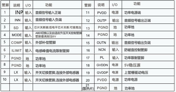 引腳排列及定義