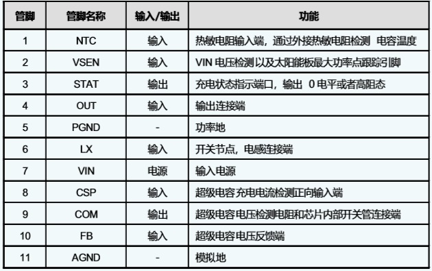 具有輸入電流自適應及NTC功能,2A同步降壓型1 - 2節超級電容充電管理IC |