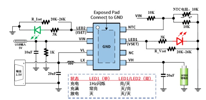 ■ 符合鋰電池充電JEITA標準,根據電池溫度和輸入 電壓智能調節充電電壓和充電電流