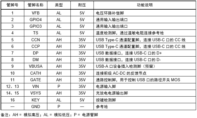 2-4節電池快充充電管理SOC ,內置PD3.0、PD2.0、QC3.0、QC2.0、BC1.2 DCP、UFCS等協議 |