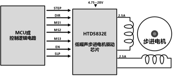 HTD5832E是一款內置有譯碼器的低噪聲步進電機 驅動器。其輸出驅動能力達到28V±2.5A,最高支持256細分,同時可實現低噪聲工作。