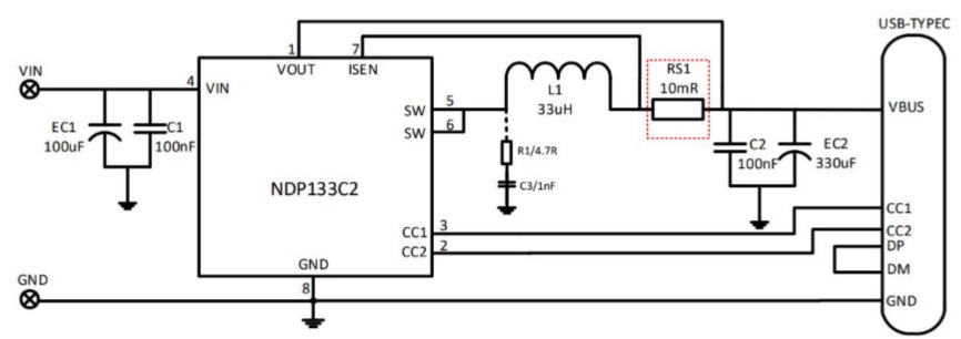 產品名稱: NDP133C2KC(支持PD3.1快充協議的33W、30V輸入3A同步降壓芯片)