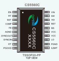 CS5560C強制PWM模式運行,可以消除開關頻率變化從而盡可能地降低EMI,而用戶可選的輕載PSM模式則可以降低輕負載條件下的電流消耗。可調開關頻率可同步至外部時鐘源,從而消除噪聲敏感應用中的干擾。TSSOP-20封裝。
