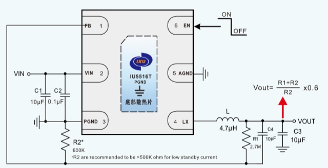 IU5516T采用了纖小的DFN2*2_6L封裝,最低可達(dá)到小于3μA漏電,最適合在移動(dòng)設(shè)備的電源內(nèi)部使用。