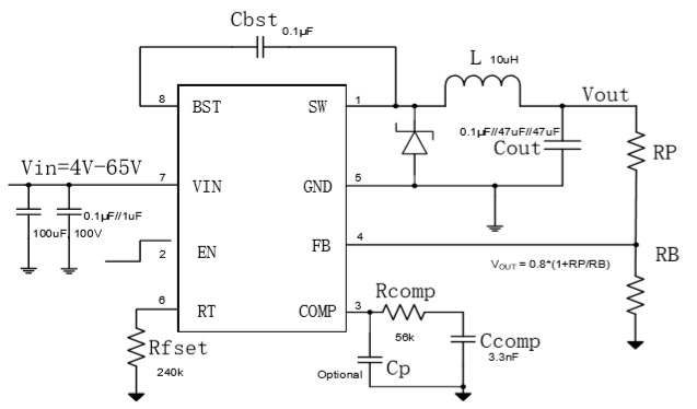 HTN7862是3A降壓轉(zhuǎn)換器,具有從4V到65V的寬輸入電壓,集成了260mΩ高側(cè)MOSFET。HTN7862采用峰值電流模式控制,支持跳周期調(diào)制(PSM),有助于轉(zhuǎn)換器在輕負(fù)載下實(shí)現(xiàn)高效率。