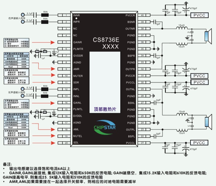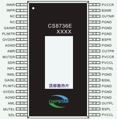 CS8736E是-款2X150W立體聲D類音頻功率放大器,這款器件在頂層設計了散熱焊盤,焊盤上連接散熱器后可以達到輸出2x150W的連續功率.在適宜的電源電壓下可以驅動低至2Ω的負載。