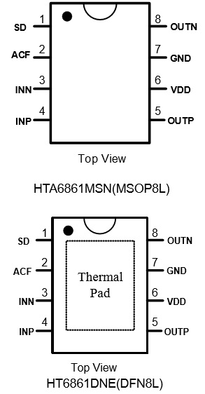 HTA6861具有超低靜態電流,0.9mA@3.7v;具有超低噪聲,80uv@26db。